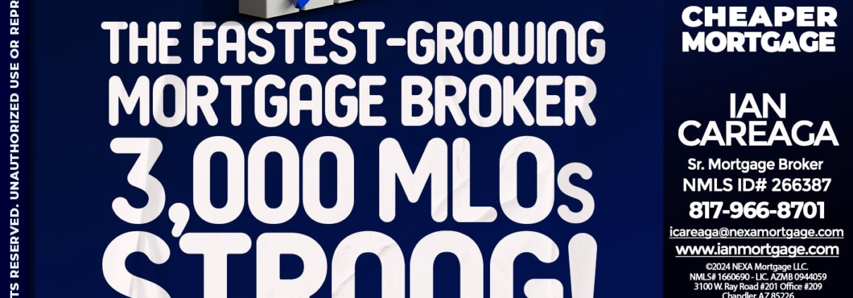 Hi, my name is Ian Careaga. I’m a Loan Officer with NEXA Mortgage LLC., offering personalized mortgage solutions, fast customized quotes, great rates and service with integrity.