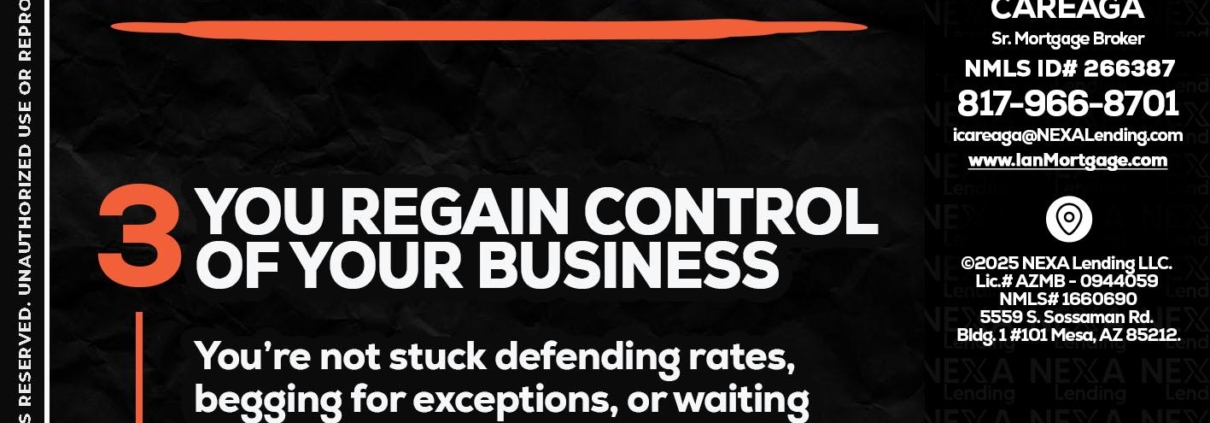 Hi, my name is Ian Careaga. I’m a Loan Officer with NEXA Lending LLC., offering personalized mortgage solutions, fast customized quotes, great rates and service with integrity.