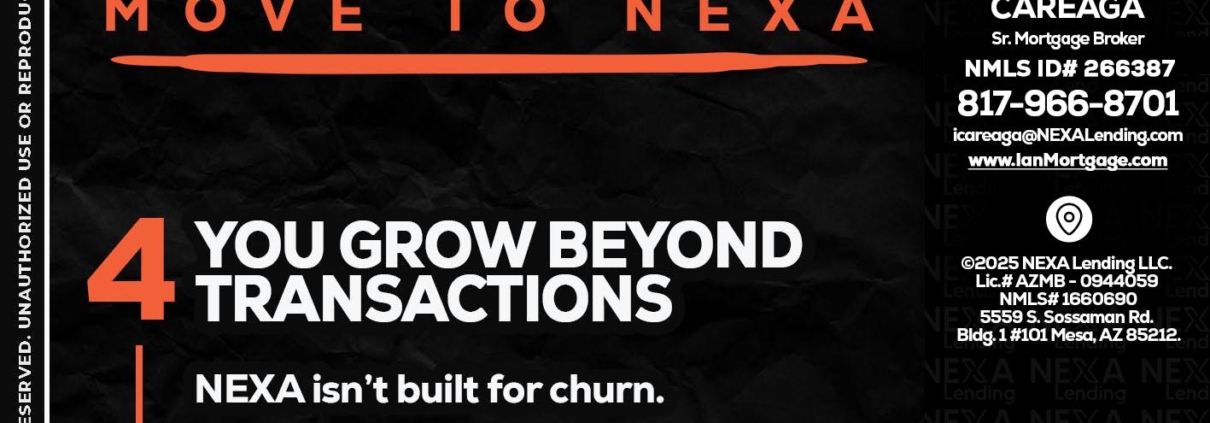 7 THINGS (4) - Ian Careaga -Mortgage BrokerHi, my name is Ian Careaga. I’m a Loan Officer with NEXA Lending LLC., offering personalized mortgage solutions, fast customized quotes, great rates and service with integrity.