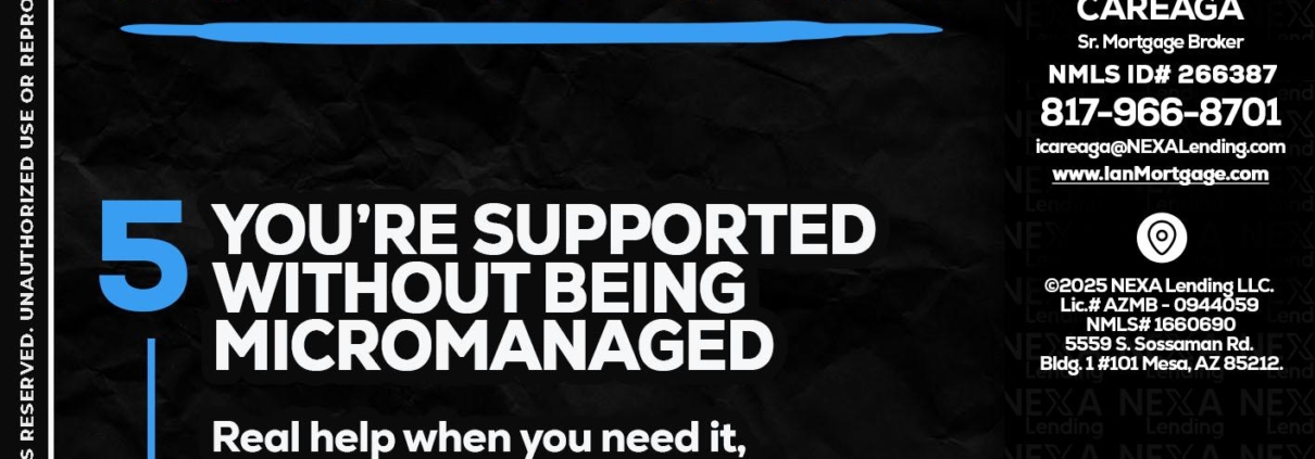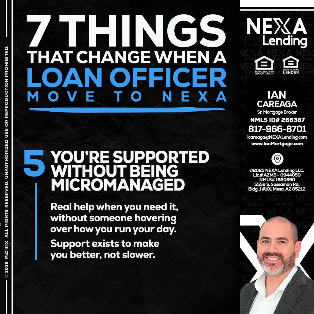 7 THINGS (5) - Ian Careaga -Mortgage BrokerHi, my name is Ian Careaga. I’m a Loan Officer with NEXA Lending LLC., offering personalized mortgage solutions, fast customized quotes, great rates and service with integrity.