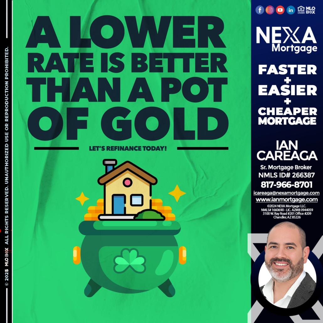 A LOWER RATE - Ian Careaga -Sr. Mortgage BrokerHi, my name is Ian Careaga. I’m a Loan Officer with NEXA Mortgage LLC., offering personalized mortgage solutions, fast customized quotes, great rates and service with integrity.