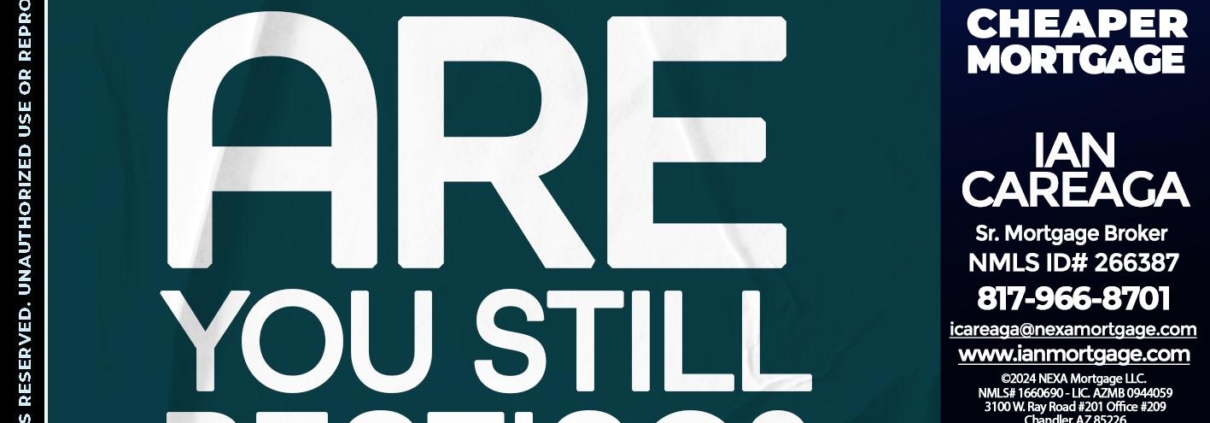 ARE YOU STILL RENTING? - Ian Careaga -Sr. Mortgage BrokerHi, my name is Ian Careaga. I’m a Loan Officer with NEXA Mortgage LLC., offering personalized mortgage solutions, fast customized quotes, great rates and service with integrity.