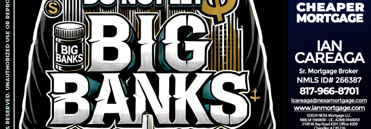 BIG BANKS - Ian Careaga -Sr. Mortgage BrokerHi, my name is Ian Careaga. I’m a Loan Officer with NEXA Mortgage LLC., offering personalized mortgage solutions, fast customized quotes, great rates and service with integrity.