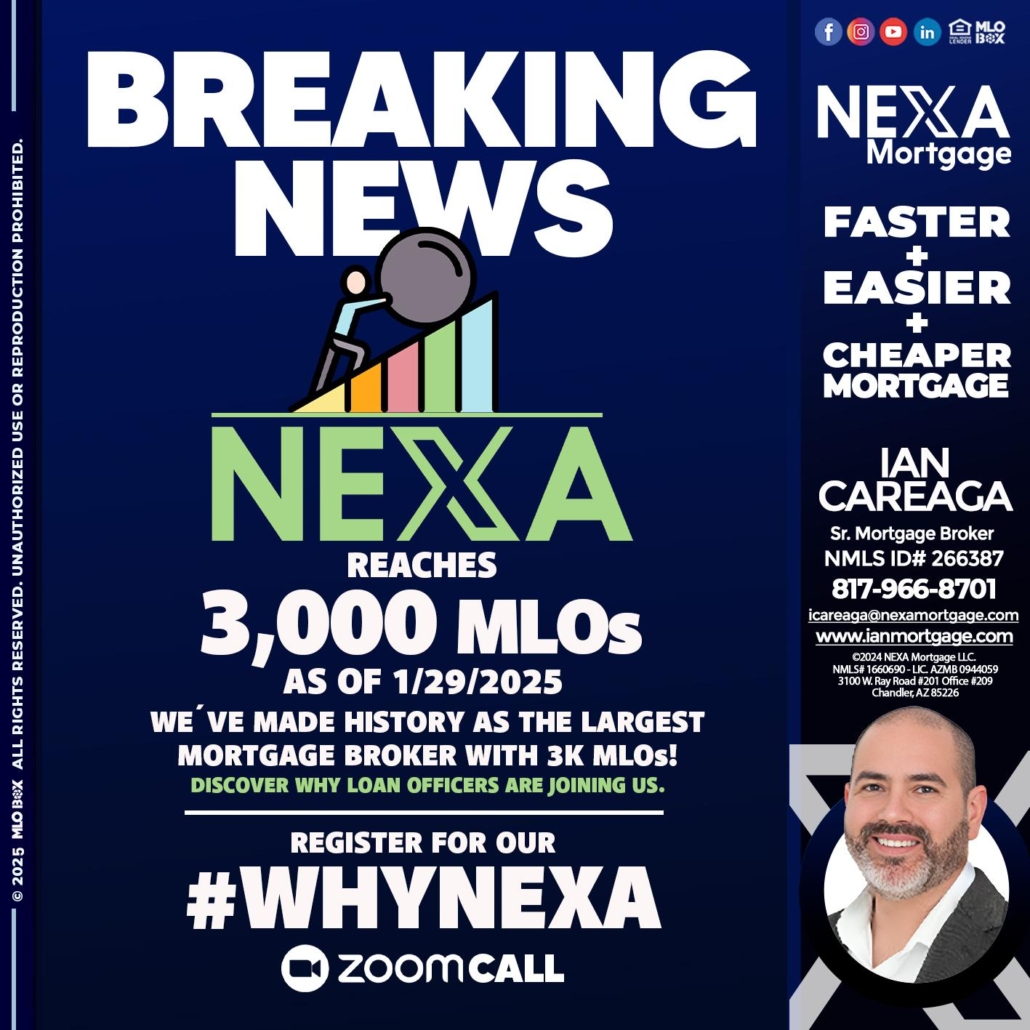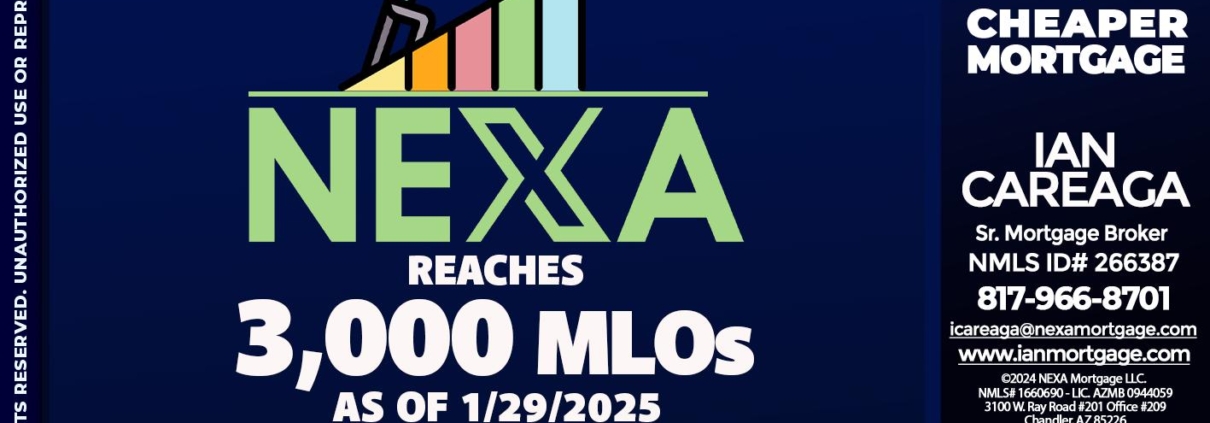 BREAKING NEWS - Ian Careaga -Sr. Mortgage BrokerHi, my name is Ian Careaga. I’m a Loan Officer with NEXA Mortgage LLC., offering personalized mortgage solutions, fast customized quotes, great rates and service with integrity.