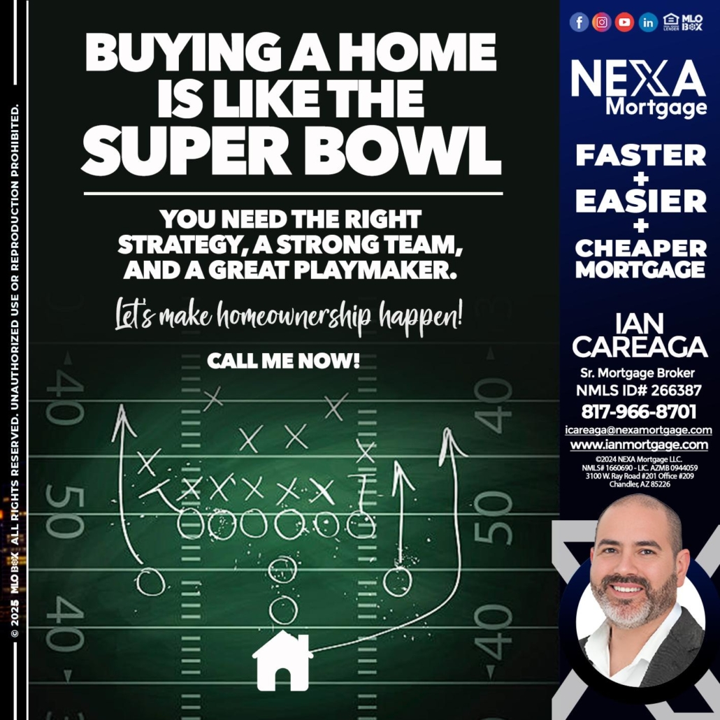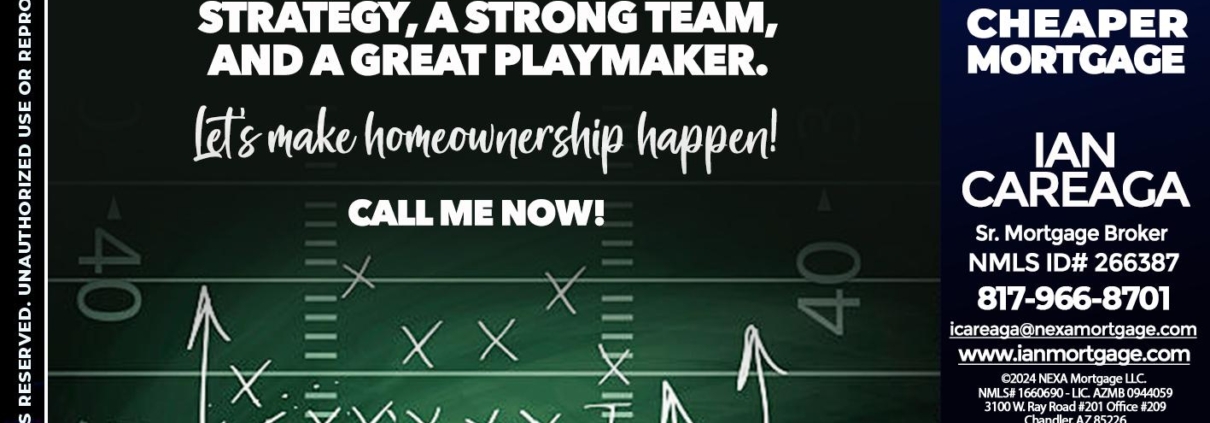 Hi, my name is Ian Careaga. I’m a Loan Officer with NEXA Mortgage LLC., offering personalized mortgage solutions, fast customized quotes, great rates and service with integrity.