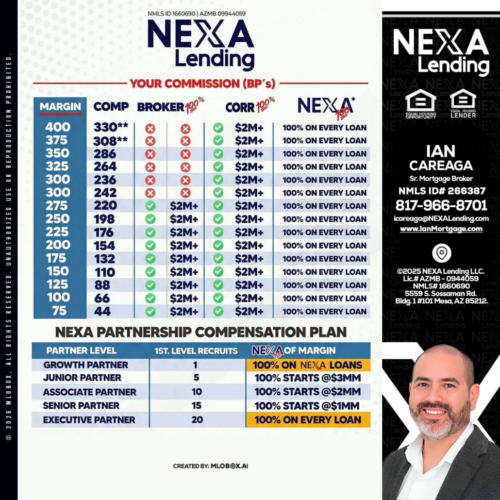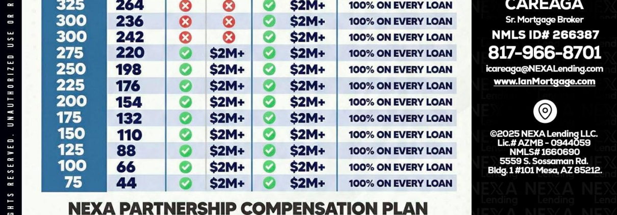 COMP - Ian Careaga -Mortgage BrokerHi, my name is Ian Careaga. I’m a Loan Officer with NEXA Lending LLC., offering personalized mortgage solutions, fast customized quotes, great rates and service with integrity.