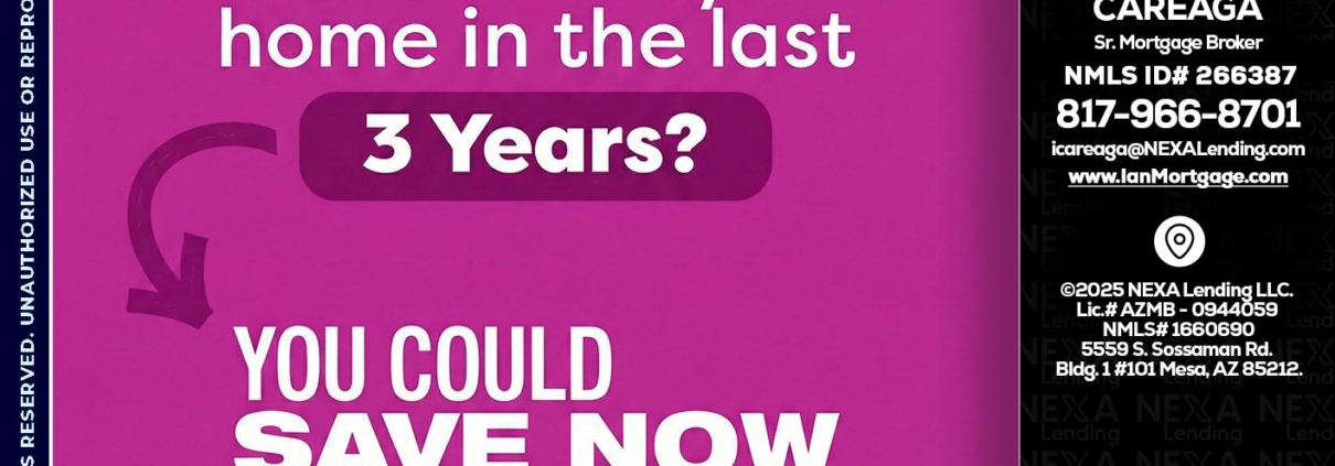 Hi, my name is Ian Careaga. I’m a Loan Officer with NEXA Lending LLC., offering personalized mortgage solutions, fast customized quotes, great rates and service with integrity.