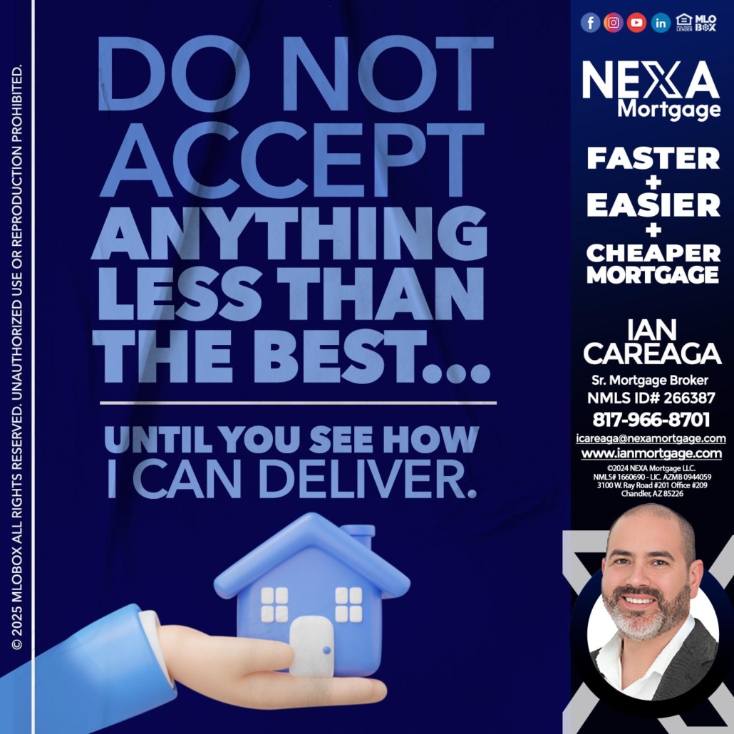 DO NOT ACCEPT - Ian Careaga -Sr. Mortgage BrokerHi, my name is Ian Careaga. I’m a Loan Officer with NEXA Mortgage LLC., offering personalized mortgage solutions, fast customized quotes, great rates and service with integrity.