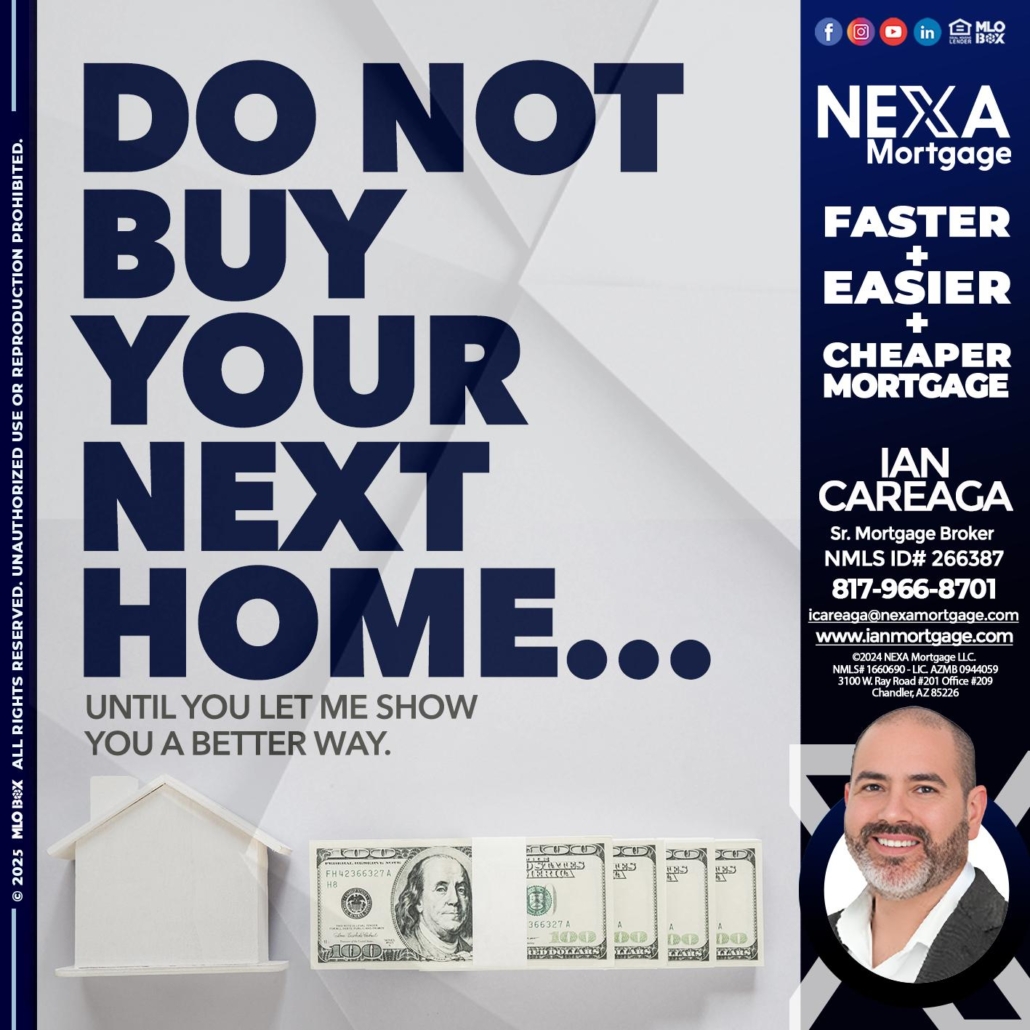 Hi, my name is Ian Careaga. I’m a Loan Officer with NEXA Mortgage LLC., offering personalized mortgage solutions, fast customized quotes, great rates and service with integrity.