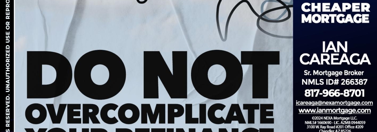 Hi, my name is Ian Careaga. I’m a Loan Officer with NEXA Mortgage LLC., offering personalized mortgage solutions, fast customized quotes, great rates and service with integrity.