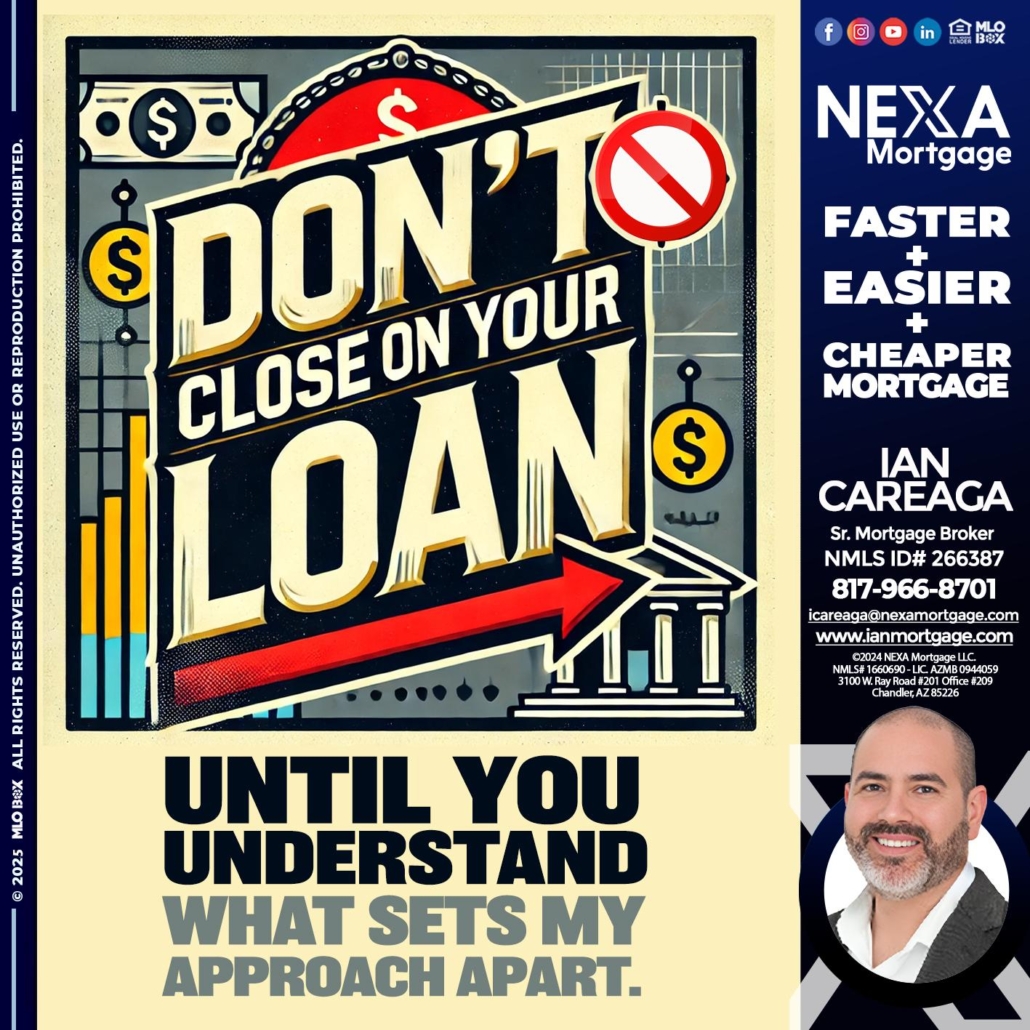 Hi, my name is Ian Careaga. I’m a Loan Officer with NEXA Mortgage LLC., offering personalized mortgage solutions, fast customized quotes, great rates and service with integrity.