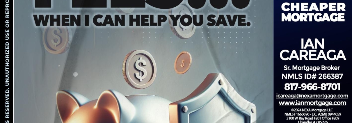 DON´T PAY UNNECESARY FEES... - Ian Careaga -Sr. Mortgage BrokerHi, my name is Ian Careaga. I’m a Loan Officer with NEXA Mortgage LLC., offering personalized mortgage solutions, fast customized quotes, great rates and service with integrity.