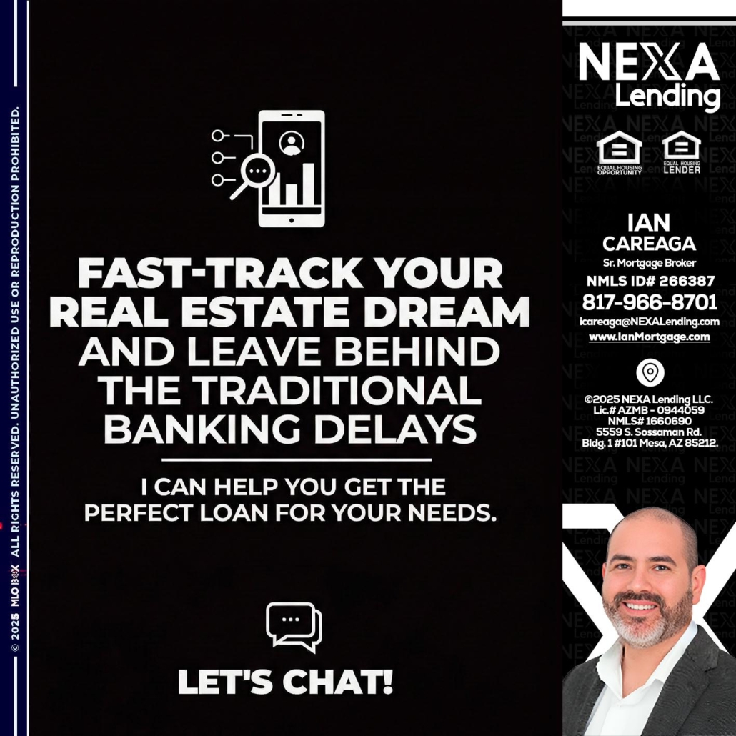 Hi, my name is Ian Careaga. I’m a Loan Officer with NEXA Lending LLC., offering personalized mortgage solutions, fast customized quotes, great rates and service with integrity.