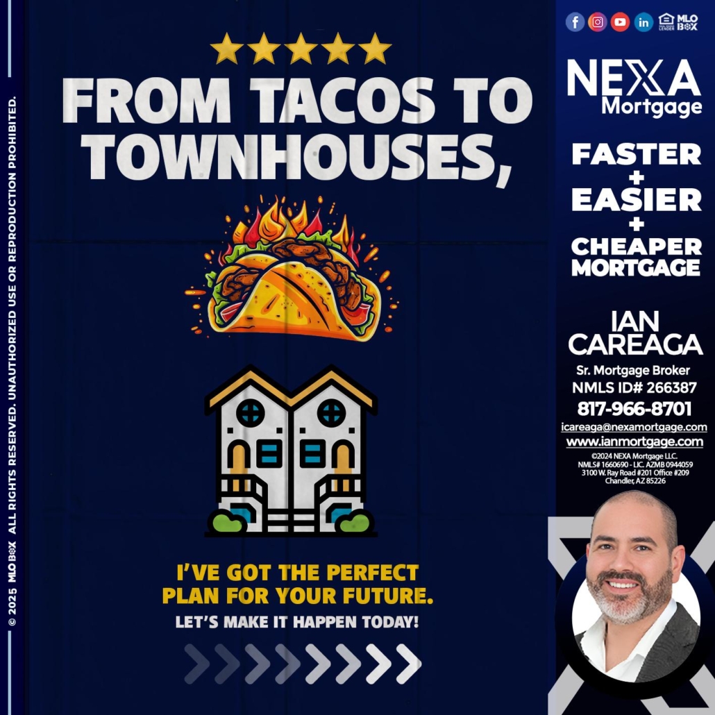 Hi, my name is Ian Careaga. I’m a Loan Officer with NEXA Mortgage LLC., offering personalized mortgage solutions, fast customized quotes, great rates and service with integrity.