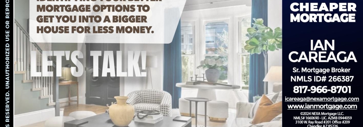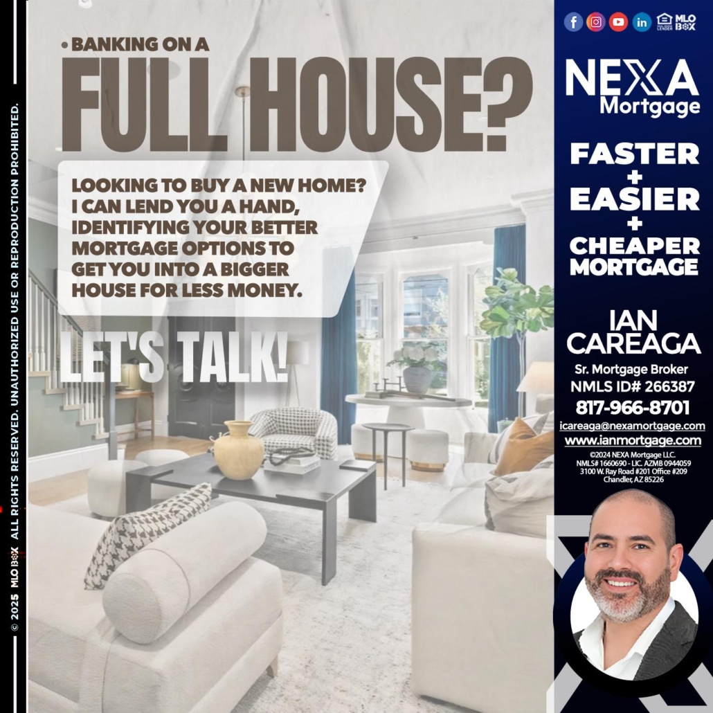 Hi, my name is Ian Careaga. I’m a Loan Officer with NEXA Mortgage LLC., offering personalized mortgage solutions, fast customized quotes, great rates and service with integrity.
