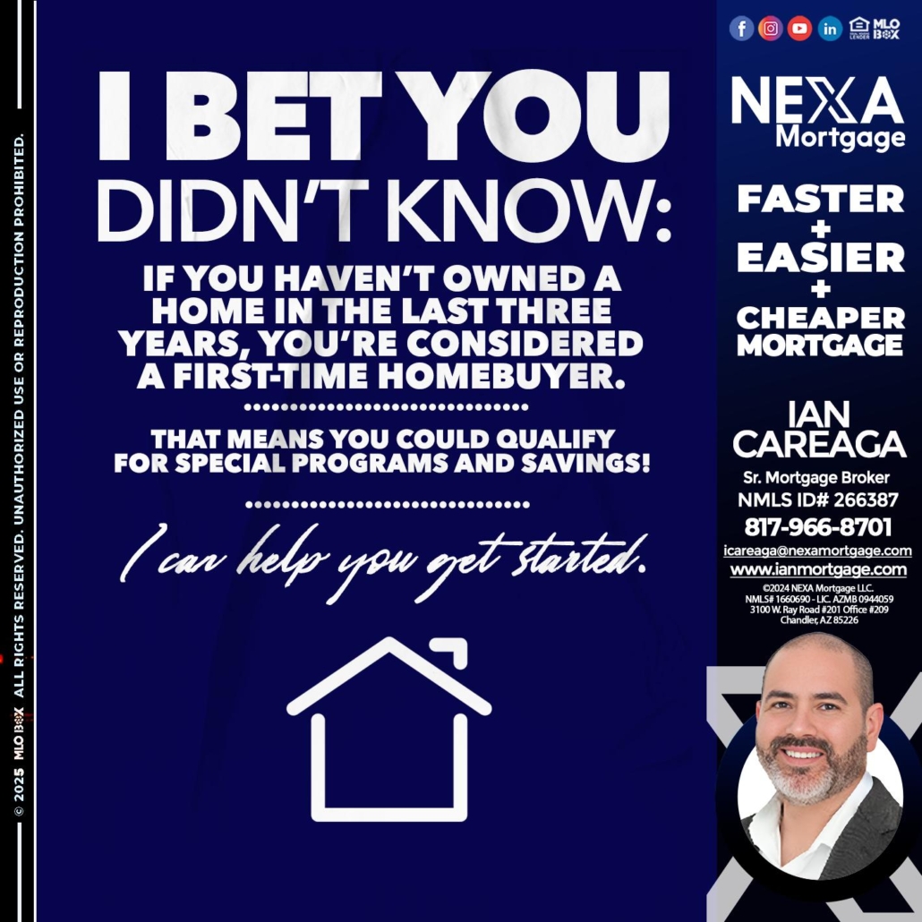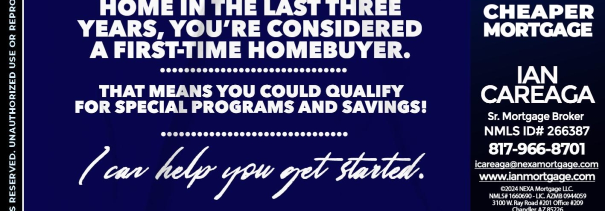 Hi, my name is Ian Careaga. I’m a Loan Officer with NEXA Mortgage LLC., offering personalized mortgage solutions, fast customized quotes, great rates and service with integrity.