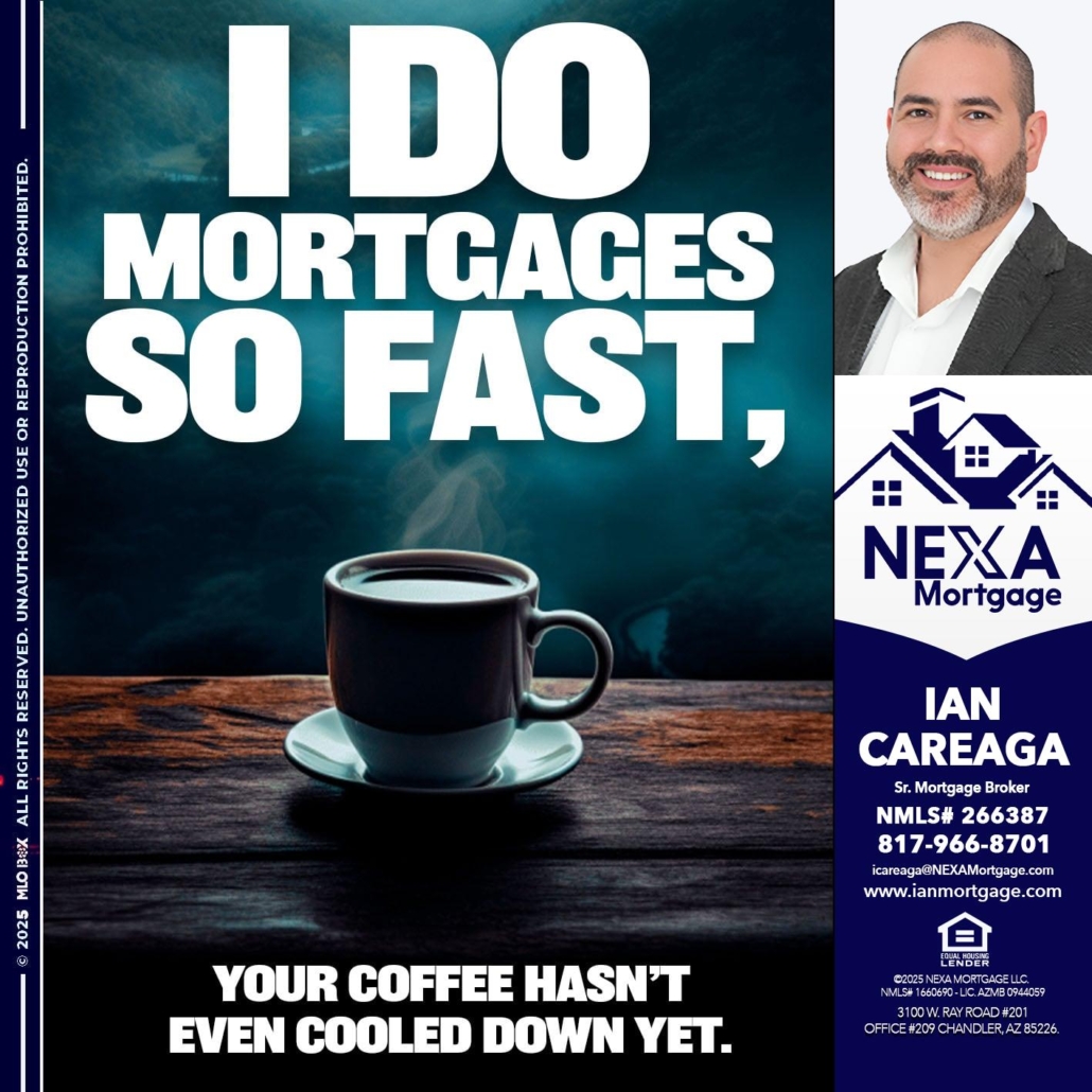 Hi, my name is Ian Careaga. I’m a Loan Officer with NEXA Mortgage LLC., offering personalized mortgage solutions, fast customized quotes, great rates and service with integrity.