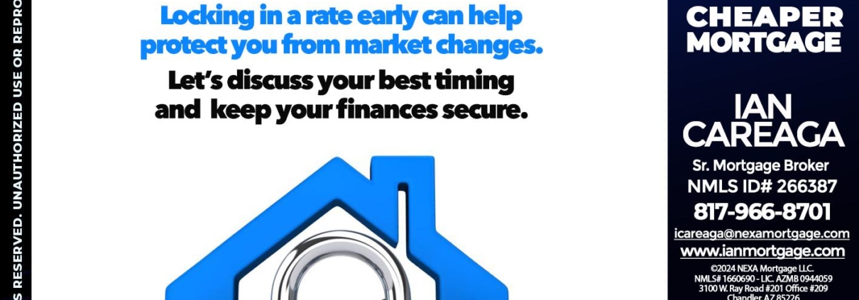 LOCK IT IN - Ian Careaga -Sr. Mortgage BrokerHi, my name is Ian Careaga. I’m a Loan Officer with NEXA Mortgage LLC., offering personalized mortgage solutions, fast customized quotes, great rates and service with integrity.