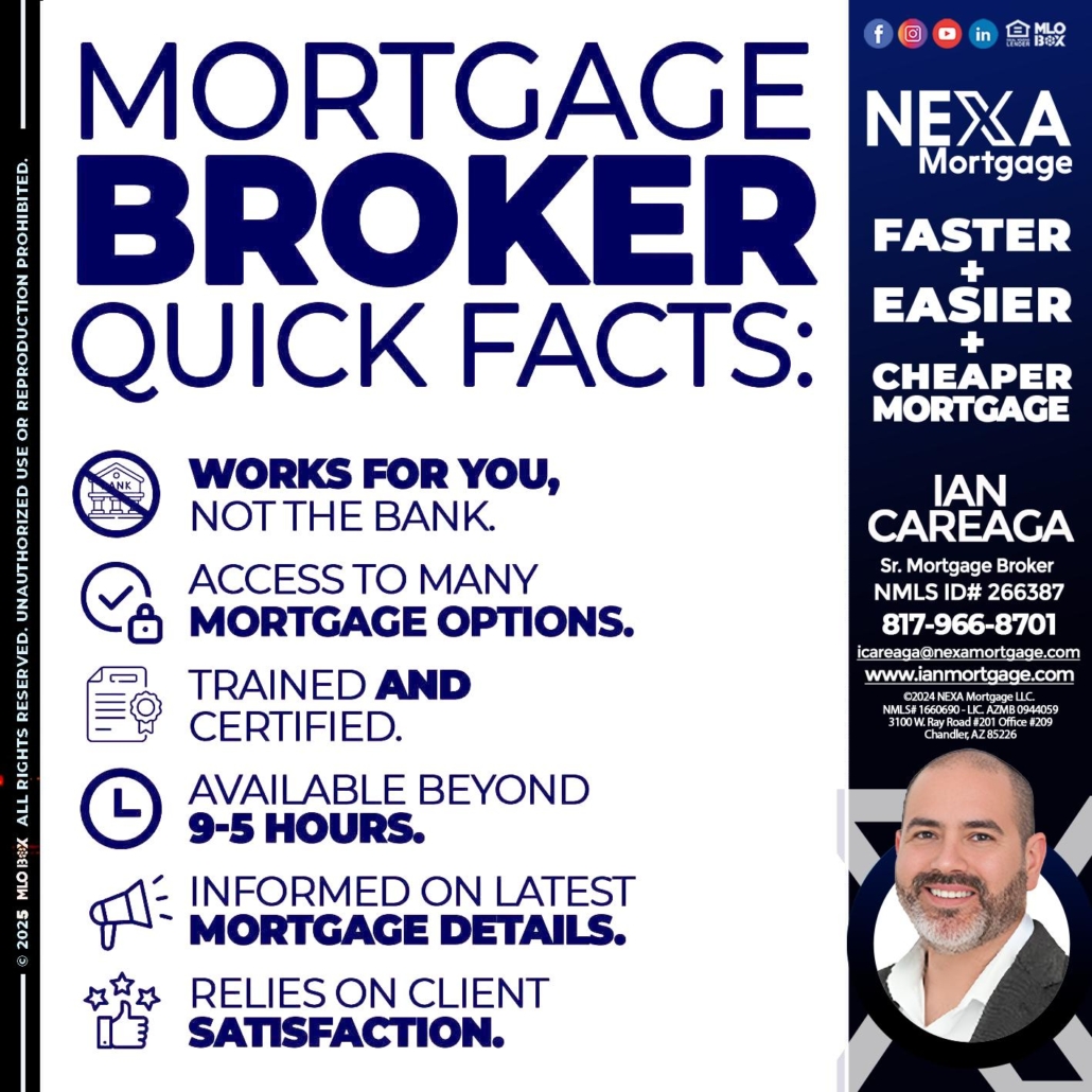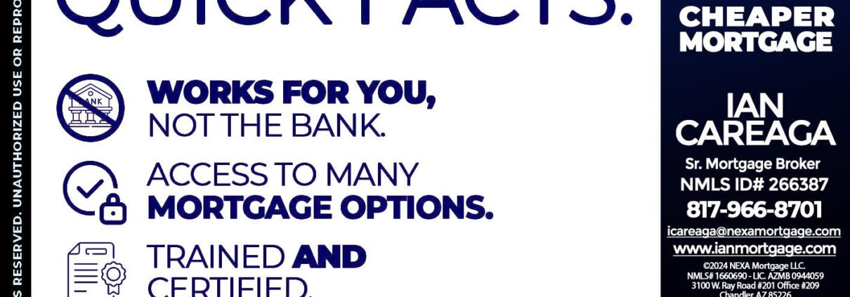 MORTGAGE BROKER - Ian Careaga -Sr. Mortgage BrokerHi, my name is Ian Careaga. I’m a Loan Officer with NEXA Mortgage LLC., offering personalized mortgage solutions, fast customized quotes, great rates and service with integrity.