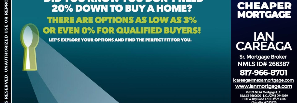 Hi, my name is Ian Careaga. I’m a Loan Officer with NEXA Mortgage LLC., offering personalized mortgage solutions, fast customized quotes, great rates and service with integrity.