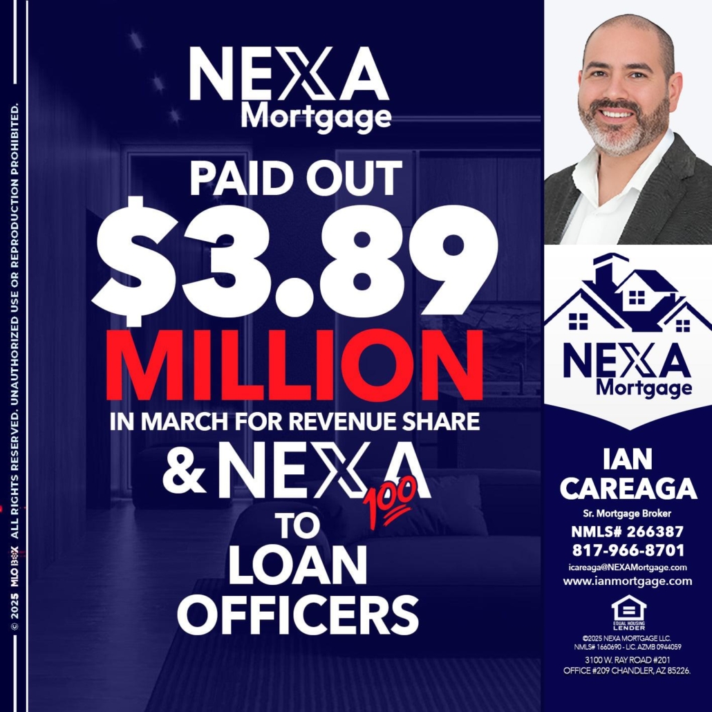 Hi, my name is Ian Careaga. I’m a Loan Officer with NEXA Mortgage LLC., offering personalized mortgage solutions, fast customized quotes, great rates and service with integrity.