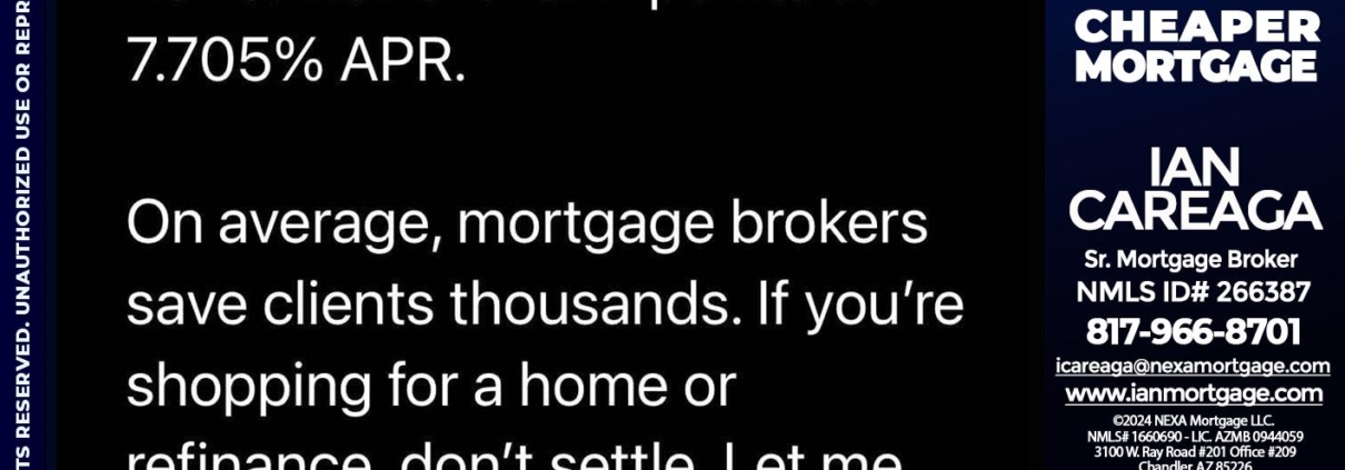 Hi, my name is Ian Careaga. I’m a Loan Officer with NEXA Mortgage LLC., offering personalized mortgage solutions, fast customized quotes, great rates and service with integrity.
