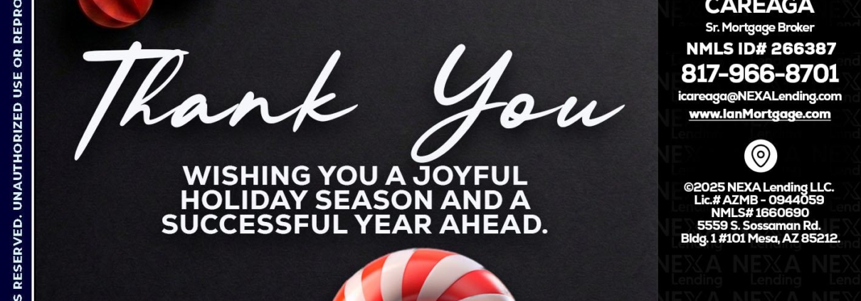 Hi, my name is Ian Careaga. I’m a Loan Officer with NEXA Lending LLC., offering personalized mortgage solutions, fast customized quotes, great rates and service with integrity.